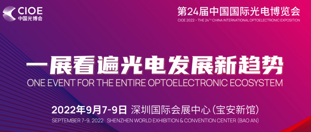 2022年9月7-9日,第24屆中國國際光電博覽會將在深圳國際會展中心舉辦。作為極具規(guī)模與影響力的光電產(chǎn)業(yè)綜合性展會,本次展會展示面積達22萬平方米,預(yù)計參展企業(yè)超3000家,專業(yè)觀眾將達10萬人以上,展區(qū)將覆蓋信息通信、紅外技術(shù)及應(yīng)用、精密光學(xué)&攝像頭技術(shù)及應(yīng)用、激光技術(shù)及智能制造、智能傳感、光電子創(chuàng)新&新型顯示創(chuàng)新技術(shù)等六大領(lǐng)域。