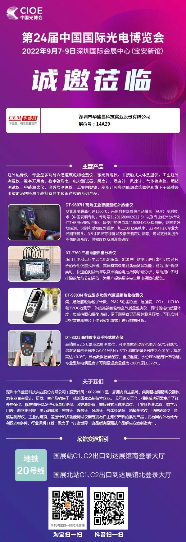 CEM華盛昌即將亮相2022年9月CIOE中國光博會